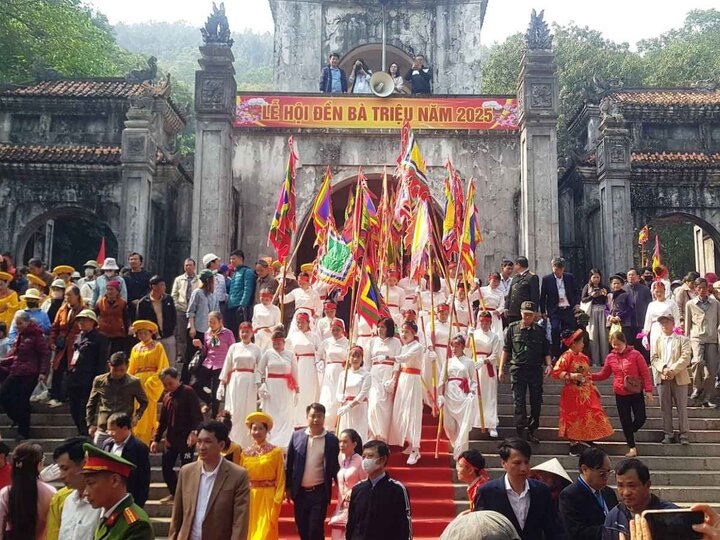 Lễ hội đền Bà Triệu diễn ra trong 3 ngày từ 21 đến 24 tháng 2 âm lịch với quy mô lớn. Nghi lễ chính thức bắt đầu bằng lễ rước kiệu từ sông Mã về đền, tái hiện hình ảnh Bà Triệu từ chiến trường trở về. Đặc sắc nhất là màn hát chầu văn của các nghệ nhân dân gian, kể lại cuộc đời và chiến công hiển hách của nữ tướng quân.